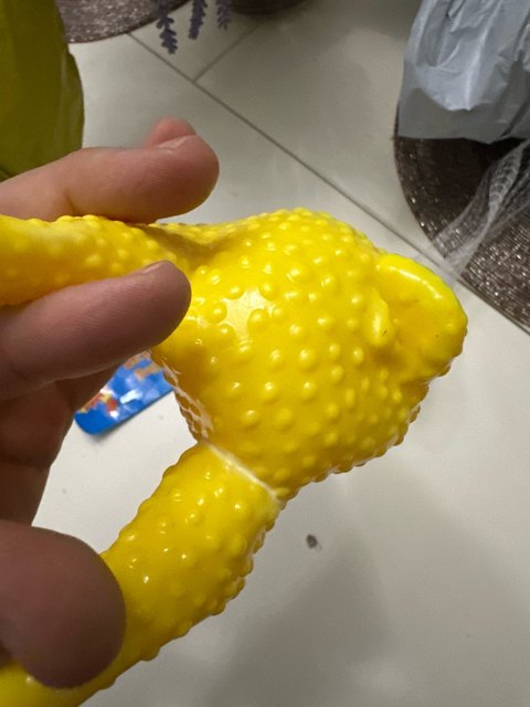 Mon chien aime ce jouet. Si vous le pressez au milieu, le couinement est fort, ce que mon chien adore.
